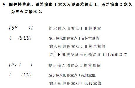 兩種料雙速、誤差輸出1 定義為預(yù)置點(diǎn)允差輸出1、誤差輸出2定義為預(yù)置點(diǎn)允差輸出2: